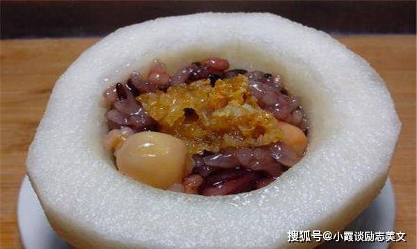 3、加入鲜嫩玉米粒、鲜冬瓜、精盐,煎煮30分钟后入味精即可食用。