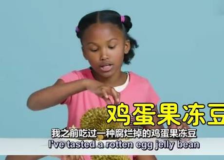 这个外国小孩说,自己吃过一种腐烂掉的鸡蛋果冻豆,它与榴莲的味道特别相似,看到这个地方时还以为小姑娘见多识广,一点都不怕榴莲呢!结果等榴莲的果肉吃进嘴里,她却立马吐掉了……