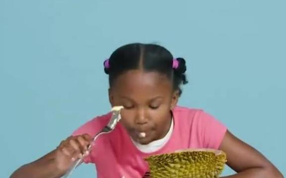 这个外国小女孩还说榴莲看起来像“一只死翘翘的小动物”,如此形容也是没谁了!不过看小女孩的表情,看来是真的觉得榴莲好闻却难吃吧!