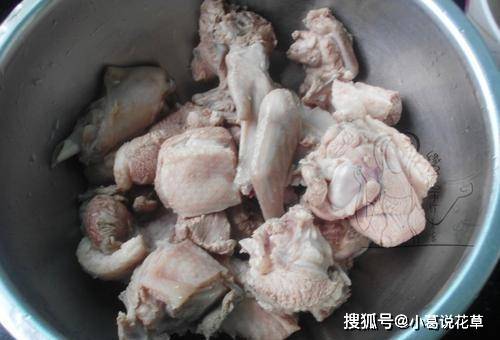 烹调步骤2:平底锅准备一锅水,多放鸭块,加几片姜,多加料酒,多放葱花,大火煮鸭块10分钟,去腥鸭子,所以肉不牢固。