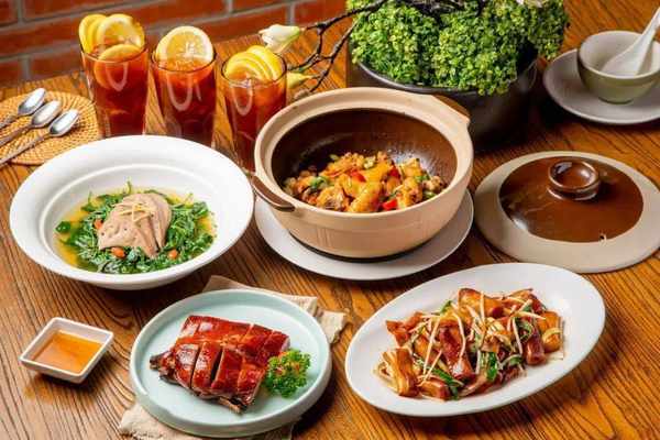 【主菜】 啫啫沙姜走地鸡 1份 88元 吊烧琵琶鸭 1份 46元 爽滑猪肝枸杞菜 1份 52元 豉油皇炒肠粉 1份 38元 【饮品】(根据实际到店人数提供,上限3份) 冻柠茶 3份 63元