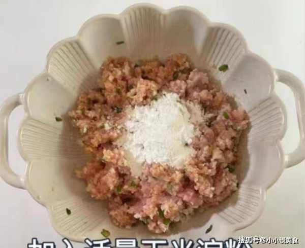 第三步:生姜切细块,细香葱切成葱花,肉末放入碗中,加入少许姜末和葱花,撒上半茶匙盐,加少许原味酱油,加入半茶匙料酒,加入一勺生粉,加入一个蛋清,将肉馅搅拌均匀静置20分钟左右。