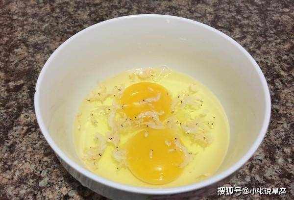 2:虾皮25克洗净去盐,沥干水分放入碗中,小葱切圈,鸡蛋打入盘中,用力搅拌所有蛋液,加入虾皮和小葱蛋液(虾皮也可以剁碎),加少许料酒,少许白醋,撒少许盐(不要太多),加少许水,让蛋液充分搅拌。
