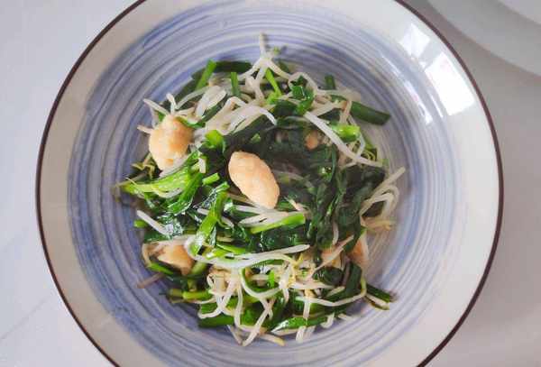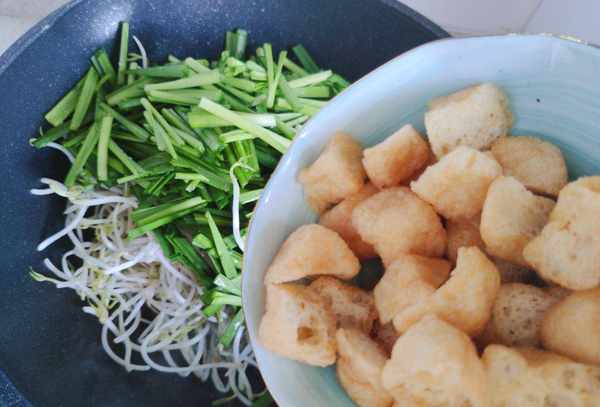 豆芽炒豆腐韭菜是一道便宜的小菜。油炸豆腐含有丰富的蛋白质、锌和钙。用韭菜和豆芽炒。有效控制热量摄入,燃脂降压,燃脂排毒,秋季忌肥肉。