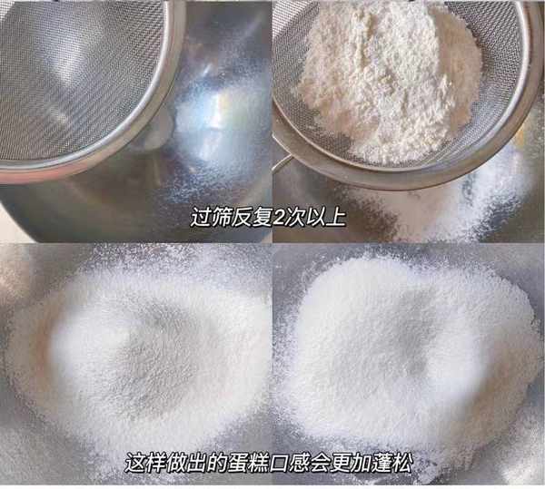 ❸切记面粉和糖不能受潮,鸡蛋选用新鲜的,但最好不要使用土鸡蛋。
