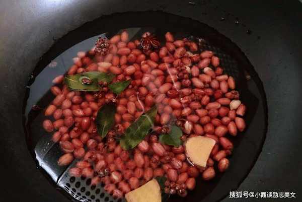 第一步烹调:将花生米去壳,用清水浸泡一会,保证营养成分充分吸收,准备一个锅,加入少许盐、胡椒粉、桂皮和胡椒粉,加入适量的水'闪耀,然后用大火将花生米煮15分钟。