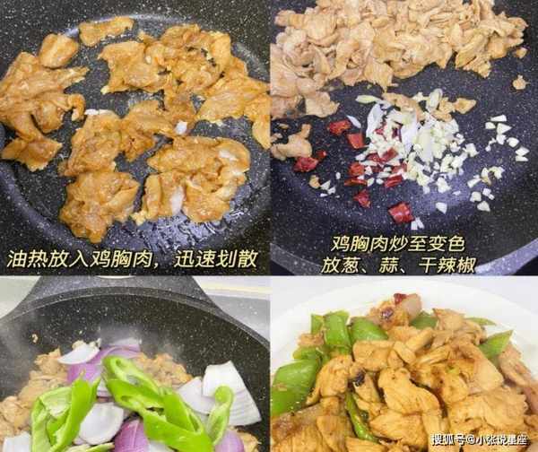 第六步:最后加入生抽和蚝油(主要是提鲜),加少许盐提味,喜欢吃辣的可以加少许辣椒油和辣椒粉,快速搅拌均匀。第七步:油炸后从锅中取出。这道嫩滑可口的烤鸡胸肉配紫洋葱青椒出锅了。肉片比较嫩滑,香味特别浓。它是大米的终极杀手。