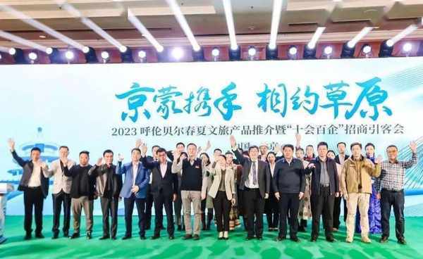3月19日,由呼伦贝尔市人民政府主办,呼伦贝尔市文化旅游广电局承办的“京蒙携手 相约草原”2023呼伦贝尔春夏文旅产品推介暨“十会百企”招商引客会在北京市举行。呼伦贝尔市人民政府副市长韩丽萍、北京市文旅局二级巡视员林增伟、北京市石景山区、西城区文旅部门及呼伦贝尔市部分旗市区负责人参加推介会。推介会还邀请中国旅游车船协会、中国旅行社协会、清华经管EMBA户外运动协会、北京呼伦贝尔企业商会、天津呼伦贝尔商会及京津地区120余家文旅企业参加。