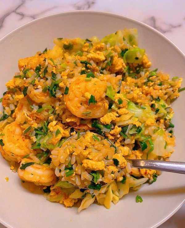 一份吃多了也不会发胖的炒饭就做好了。味道和普通的炒饭一样。它蛋白质含量高,热量低,味道鲜美。
