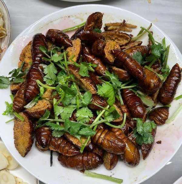 这一盘蚕蛹,让人有些麻木,有些害怕。这种食物真的好吃吗?