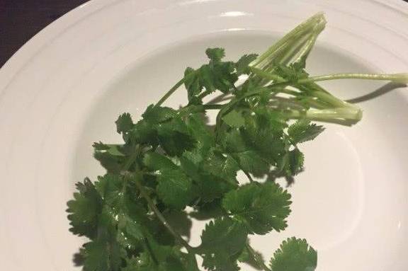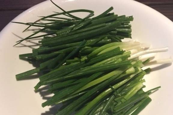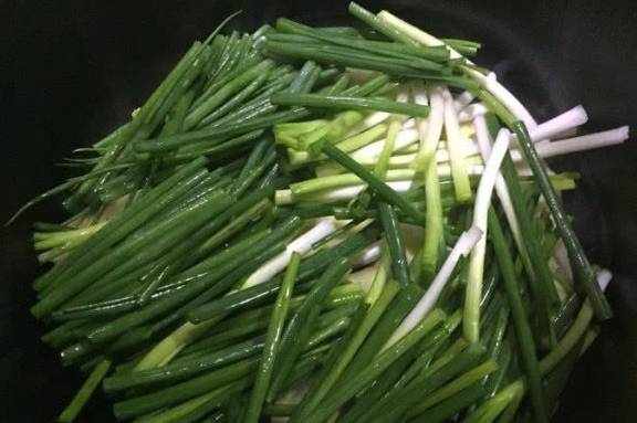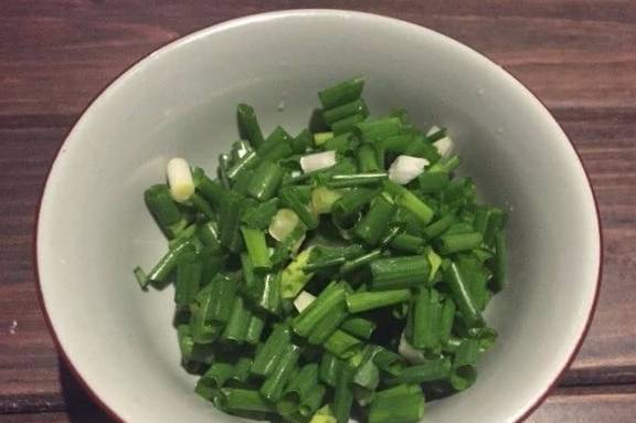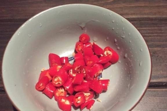 趁热浇2大勺生抽提味,放入葱碎,红椒圈和香菜。