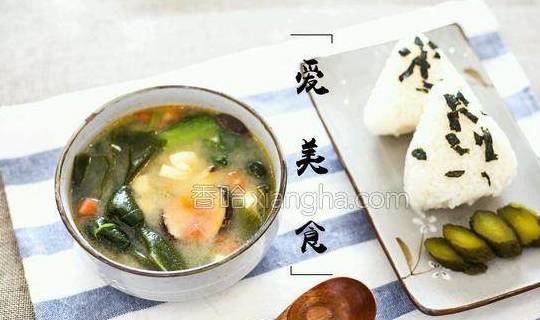 最让哈妹忘不了,放不下的就是那一抹味增汤,材料属于海带、豆腐、西红柿等青菜,然而味道却极其浓厚,应该是这口味增酱的作用,下面就教你怎么做这道美汤,吃再多也不会长胖,快来试试吧~