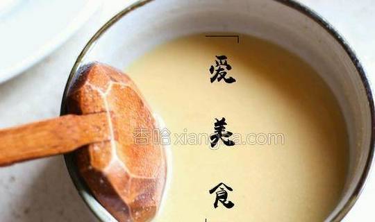 4.舀半碗锅中的热汤到装味噌酱的小碗中,搅拌一会儿,化开