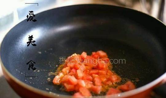 2.锅烧热放少许油,放入切好的番茄块中火翻炒至化掉,
