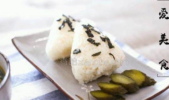 5.来一份番茄味噌汤饭团子套餐!蒸一锅米饭,趁热拌入寿司醋,捏成小饭团裹上海苔即可!