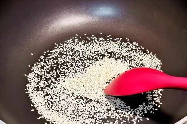 3、起锅开小火,不放油,先把白芝麻炒香,收好待用。