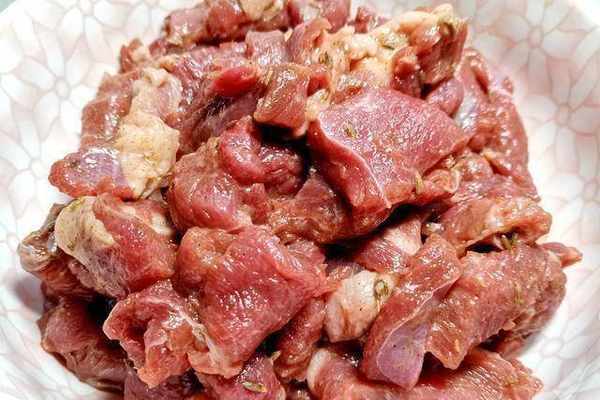 2、羊腿用料酒、生粉、生抽、盐、胡椒粉、鸡粉、糖、孜然粒、香油等混合均匀,腌制半小时。