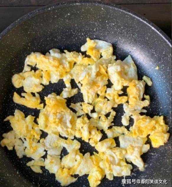 第四:锅底预热少许,加入冷油烧热,倒入准备好的蛋液,滑入蛋液,待蛋成块状,装盘待用。.
