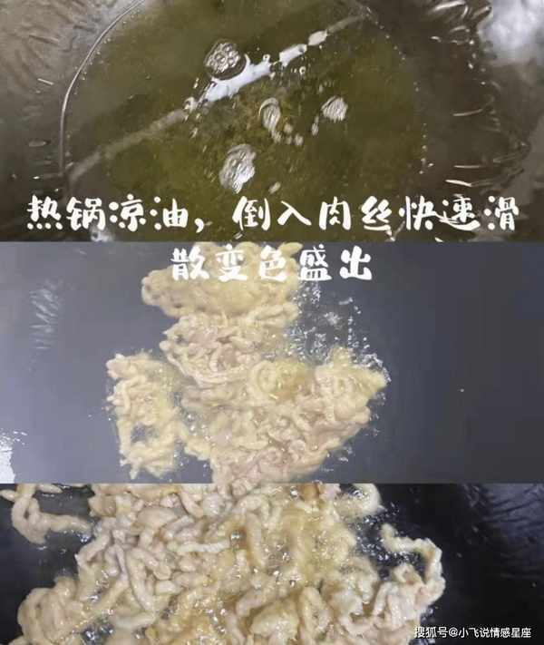 第四:红辣椒洗净切小块,姜蒜分别切段。另外,锅里放少许油,放入少许猪里脊肉丝。应调至高温并搅拌。挤出颜色和服务。