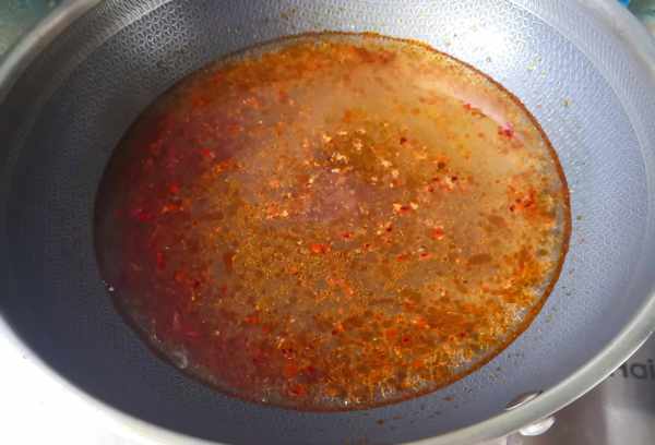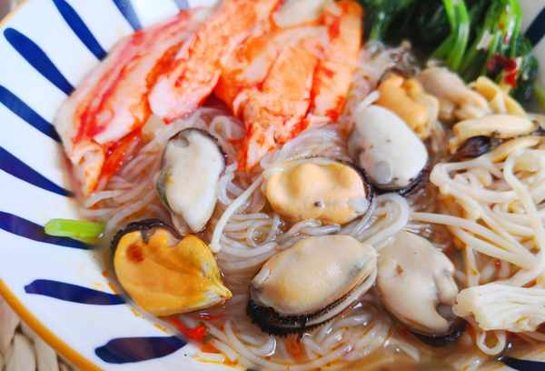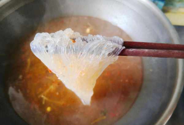 4.加入粉条煮软捞出,再将蟹肉煮熟取出,然后将汤倒入大碗中,