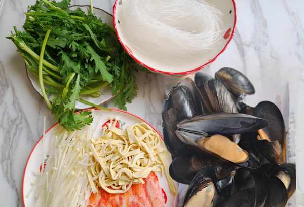 麻辣烫可以有肉、海鲜,也可以只有蔬菜。现在我的麻辣烫是海鲜,因为我个人比较喜欢新鲜的味道。来看看我准备的材料吧。没什么特别的。不得不说,现在的蛤蜊真的很肥美,这个季节千万不要错过。