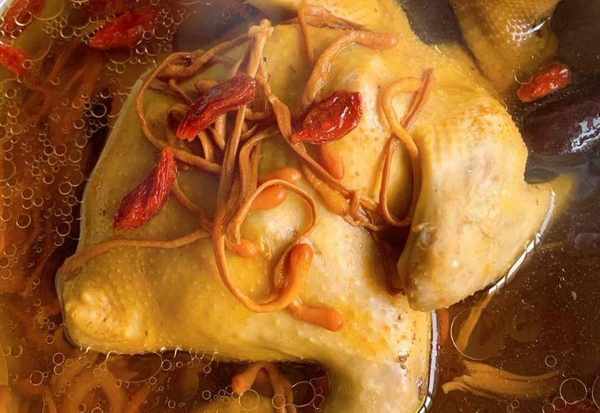 2、虫草花提前浸泡,泡发后清洗干净。将鸽子、虫草花、红枣和姜片放入汤锅中,加入足量的清水,盖上盖子炖煮两个小时。