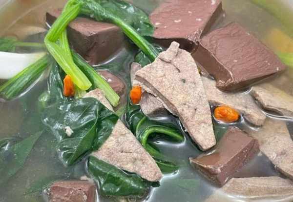 准备食材:菠菜,猪红,猪肝,姜片,蒜末,枸杞子。