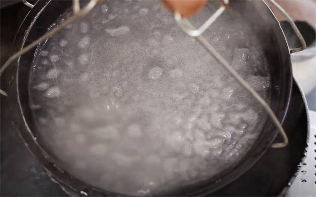 4.大概10秒左右你就会发现,表皮透明而且鼓起了小泡,就代表熟了。