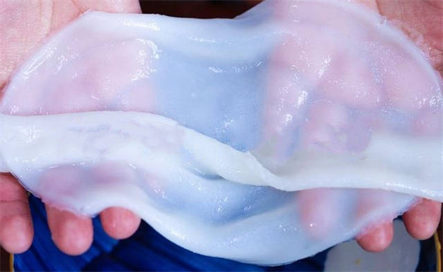 8.很多美食博主直接用淀粉和水,其实我不建议新手去这样做,因为淀粉没有筋性,即便你加了食盐,也很容易断裂。