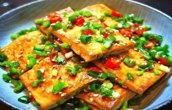 1.将葱和姜切碎,用水冲洗豆腐,切成薄片。