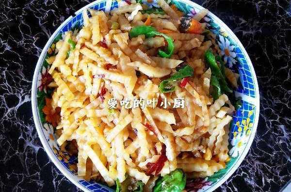 1.食材准备:土豆两个,洗净切成条;青椒适量,洗净切成片;再准备适量的葱花、蒜片、姜丝、干辣椒丝。