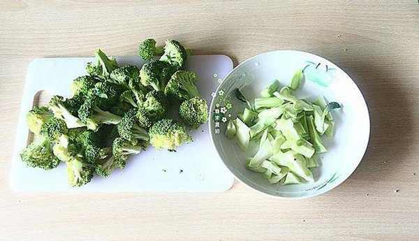 水在煮的时候,处理西兰花;把浸泡过的西兰花捞出、滤干水分,然后掰成小朵摆盘里,锅内的水开后就把碟子放蒸架上,盖盖中大火蒸3-4分钟。