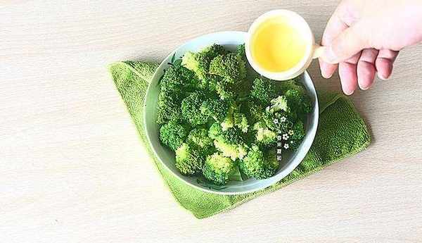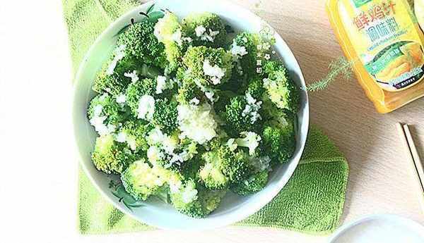 西兰花很容易熟不用蒸很久,等蒸好就马上取出西兰花,再浇上10克的花生油和冷藏过的蒜蓉鲜鸡汁,然后用筷子翻动几下就可以开吃了。