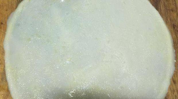 第四步蒸凉皮:大锅烧开水,水大约是锅深度的二分之一,取小碗放熟油晾凉,蒸锅水开后,取篦子,篦子上放平一打湿的笼布,给篦子上加一勺面糊,将篦子上的面糊转着均匀后放入开水蒸锅上,盖上锅盖蒸,火放成中火就成,大约五分钟后,凉皮成形且气泡时就正好了,取出篦子将凉皮取下反扣在案板上,这时把熟好的油给凉皮一面抹均匀晾着,再继续蒸下一张,直到蒸完所有的凉皮。