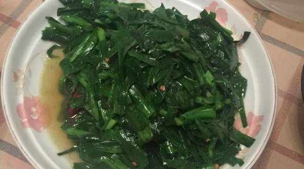第二步韭菜去干叶子后清洗控干,切成大约三四厘米长的小段后,炒锅热油,倒入韭菜加盐,五香粉和鸡蛋后快速出锅。