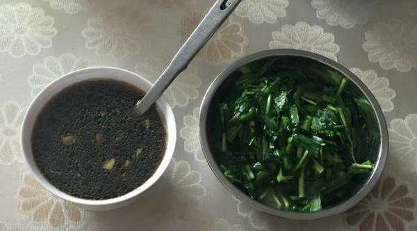 第三步大蒜剥皮剁碎后加盐,五香粉后泼油,加酱油和醋。