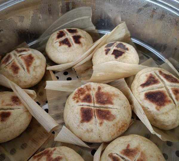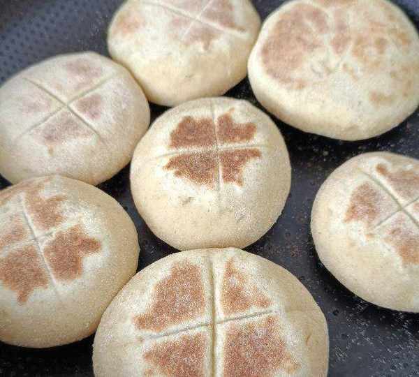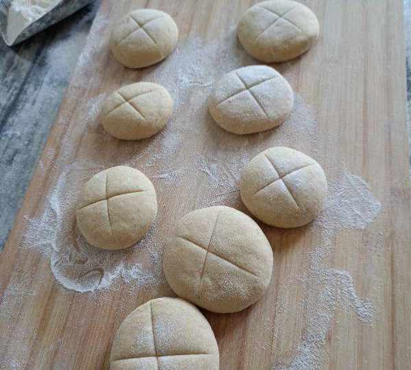 第11步、分成几个剂子,揉光,按扁,打十字花刀。