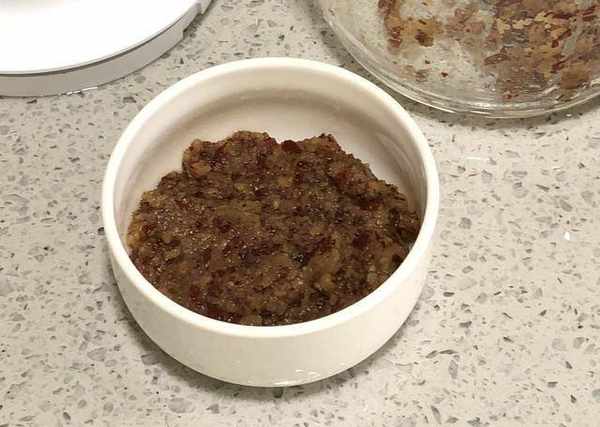 2、接下来,把煮软后的红枣放到搅拌机中,搅打成红枣泥后待用。