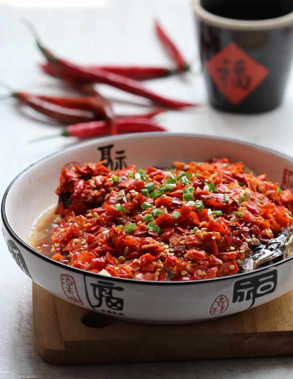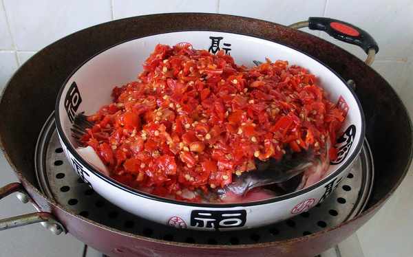 材料:鲢鱼头1个,湖南特制剁椒200克。