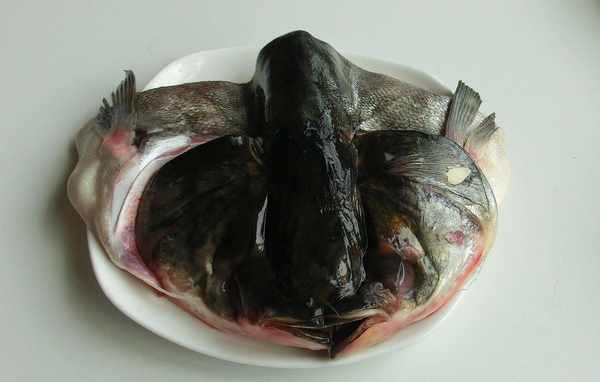 做法:1.将鱼头洗净切成两半,鱼头背相连。