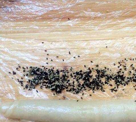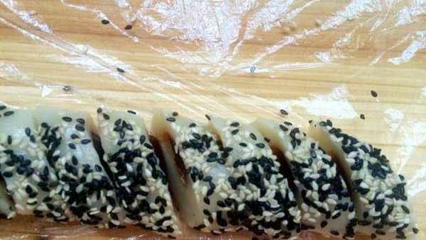整个糯米条都会卷上芝麻粒,看着就想吃