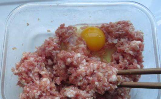 做法:肉糜加干淀粉、鸡蛋、蚝油、姜末、料酒、盐调匀,腌制片刻。