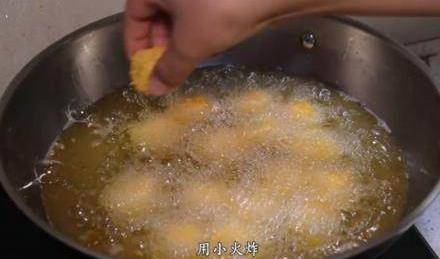 温馨提示:油温在六成热时就要将土豆丸子放入锅中油炸。