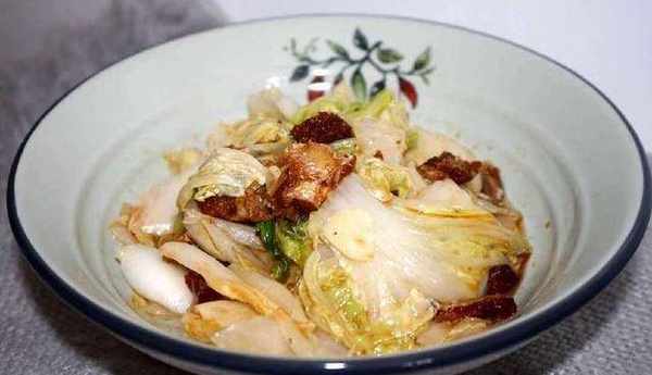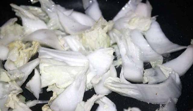 3、这道菜适合猛火爆炒,白菜要充分利用锅中的温度把它炒熟,这样炒出来的白菜才会更香更入味。
