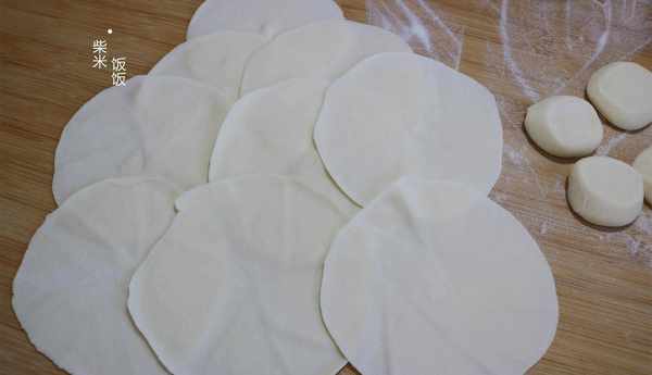 6,把醒好的面团移到面板上,搓成长条,切成小剂子,个头可以比包饺子的大一些。擀成薄薄的面皮。