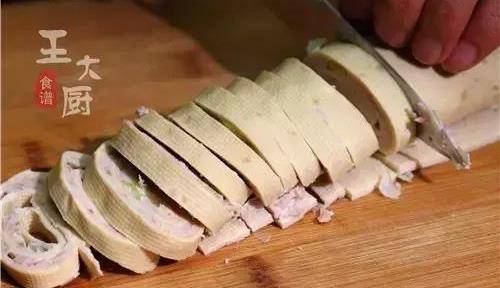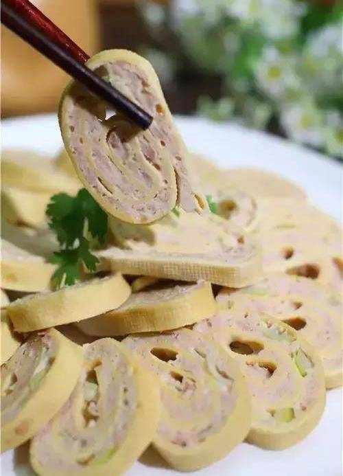 11、待肉卷蒸熟后,用刀切成片摆入盘中即可。