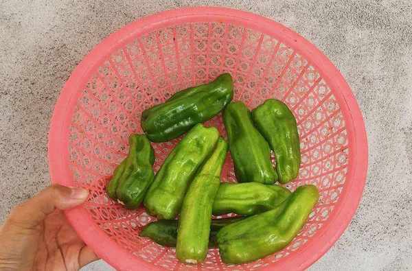 食材:新鲜嫩青椒(捏着软软的,但不是放坏那种哟)六七个,大蒜两瓣,油盐酱醋等调料