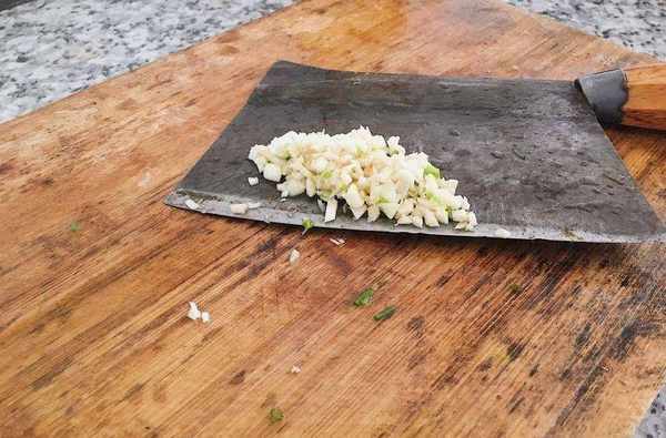 1️⃣新鲜嫩青椒去蒂(辣椒瓤保留)后洗净,大蒜去皮剁碎备用;