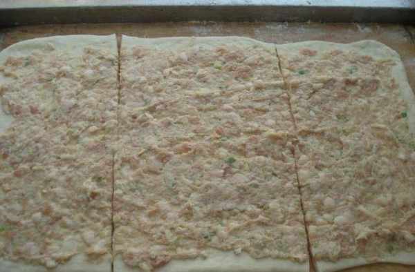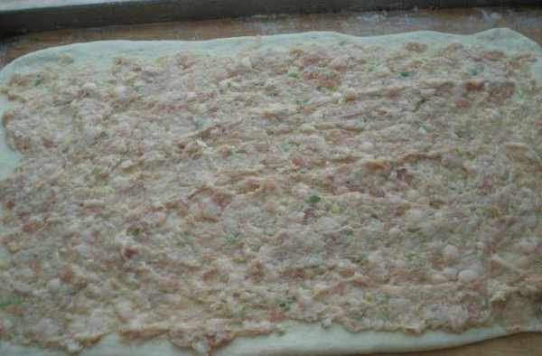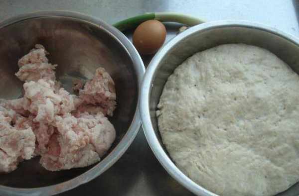 步骤:1.提前发好的面团(干面粉中加入发酵粉和少许的白糖,再加温水和面,放置温暖的地方进行发酵)和肉末。