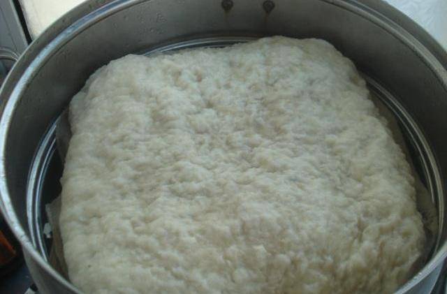 10.放入蒸锅,用手轻轻按成一厘米厚的饼状。醒15分钟后开中大火蒸15分钟即可关火。
